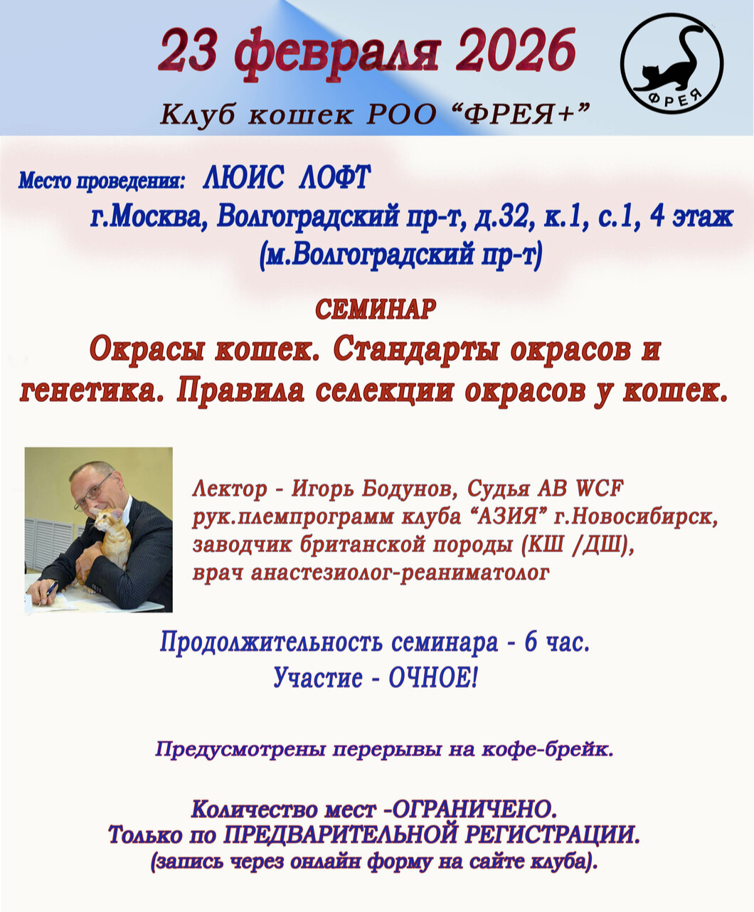 Мы проводим большую просветительскую работу среди фелинологов, организуя: