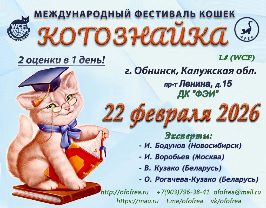 Клуб "ФРЕЯ" с момента основания является членом Всемирной Федерации Кошек (WCF).