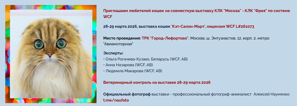 * WCF-ринги: взрослые, юниоры/котята, кастраты: 1 день- 1тр. / 2 дня- 1,5 тр.